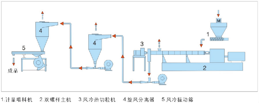 PS是一種合成的芳香族熱塑性塑料,可以是固體也可以發(fā)泡。然而,為了有效地與木塑纖維結(jié)合,PS必須保持固態(tài)。通過在PS中添加木塑纖維,PS提供了木塑粒子的結(jié)構(gòu)完整性,木塑纖維賦予PS天然的木材顏色。兩者的結(jié)合主要用于制造家具和房屋建筑,常被用來代替天然木結(jié)構(gòu)。其優(yōu)點(diǎn)之一是可以利用回收木材來減少碳消耗。雙螺桿造粒機(jī)是生產(chǎn)PS類木塑粒子的常用設(shè)備,為避免與水接觸,切粒方法:風(fēng)冷輸送帶拉條造粒和風(fēng)冷模面熱切造粒。